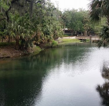 There is no swimming allowed at Gemini Springs (at one time there was, but no longer). However, it's still a nice place to visit. Pack up a lunch and have a picnic there! You can have a picnic, let the kids play on the playground, and take a short hike. It's a beautiful place and worth exploring.