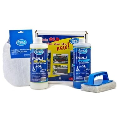 The Keystone Bullet owner'; manual stated that to remove the oxidation damage on the RV you should use a product called Poli Glow. I read about it on Amazon, and was skeptical that it would do any better than the Maquiar's kit did, but I had to give it a try since the manufacturer recommended it. We had called one company that offers the restoration service, and they wanted $600-700 to do the work (and that's only for half the trailer). I wasn't going to pay that, because I felt that if we could just find the right product we could do the work ourselves. And that's what we did!