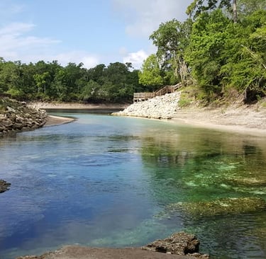 This place is a real gem! It's a large spring that is located on the Suwannee River, and it was free to get into (they now charge $5 per car). The spring has a limestone shelf and is surrounded by large rocks to prevent erosion on the bank. From the parking lot, there are steps leading down into the spring area. Litter River Springs offers great snorkeling, diving, and swimming. There are some deeper areas around the cave, for those who want to explore, but there are also many more shallow areas. There are also places along the side where you can sunbathe or just sit and enjoy the sandy beach-type areas.