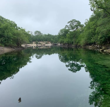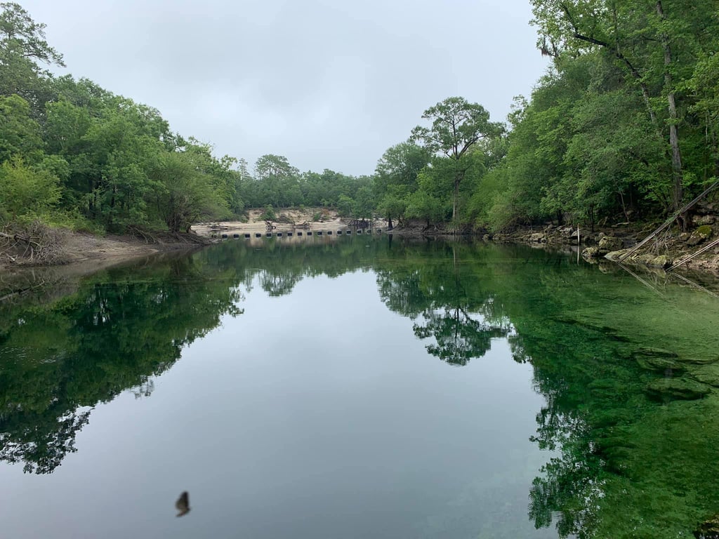 Troy Springs is on the Suwannee River, and the spring run is visible right from the swimming area. It's a beautiful spring that quickly became one of my husband's favorite ones. It's a very large spring swimming area that has a very deep area over the vent, and then there are more shallow areas and a beach-like access for younger kids or those wanting to stay out of the deep area. The water has many limestone rock formations, and there are even remnants of a sunken ship from the Civil War.