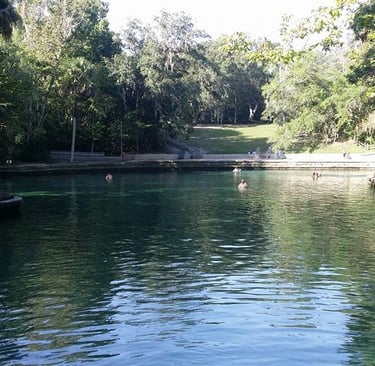 The springs at Wekiwa are beautiful! The swimming area is large, so even when it got busier, there was still enough room for everyone to enjoy themselves. The water is crystal clear and refreshing. I personally love the cool water of the springs in Florida (it's 72 degrees year-round). We had a great time snorkeling, tubing, and just hanging out. Most of the water comes up to around my chest. There are a few areas that are a little deeper. There is plenty of room around the springs to set up your chairs and things, as well as a grassy area where people can set up their things. There are also a few benches around the springs that can be used. In July 2017, they built a small shallow area for little kids.